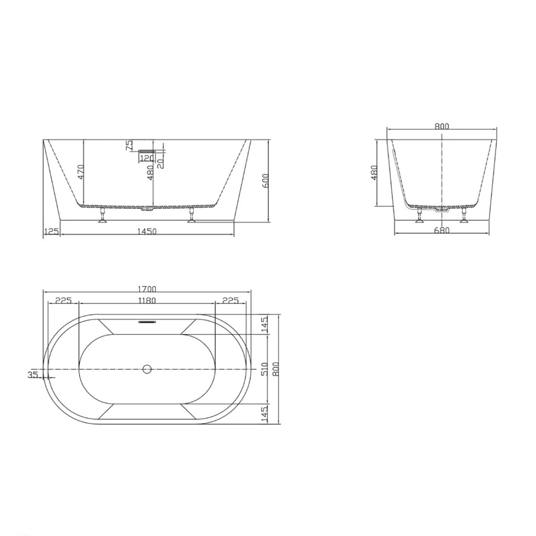 • Freestanding oval design for a timeless look