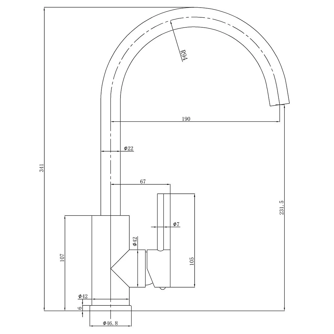 • Generous reach for improved functionality at the sink