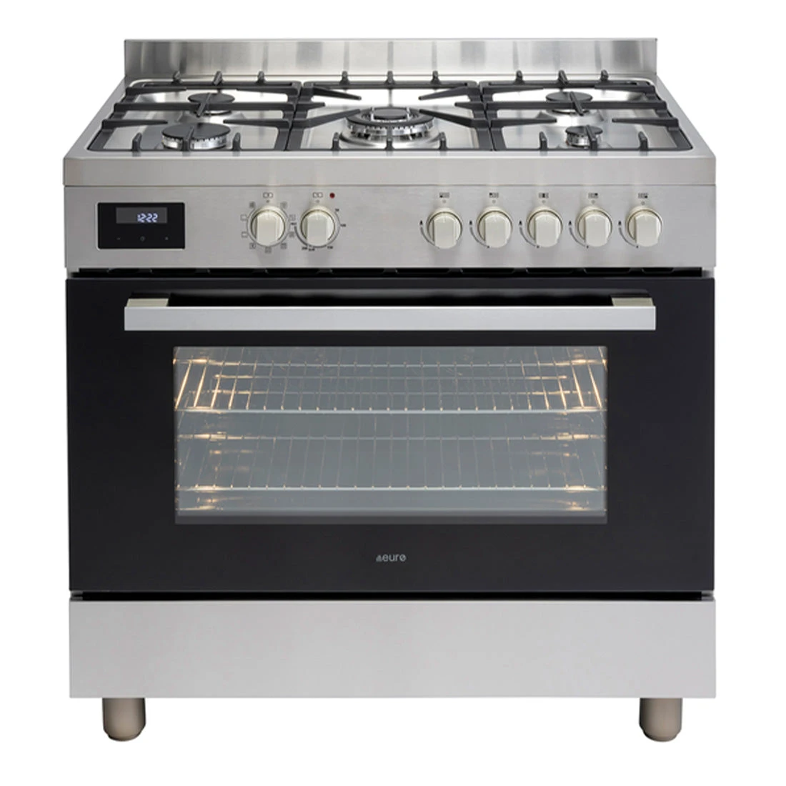 Elevate your culinary experience with the Euro Appliances 90cm Dual Fuel Freestanding Oven in sleek stainless steel. This versatile appliance combines the precision of a gas cooktop with the consistency of an electric oven, offering the best of both worlds for passionate home cooks.