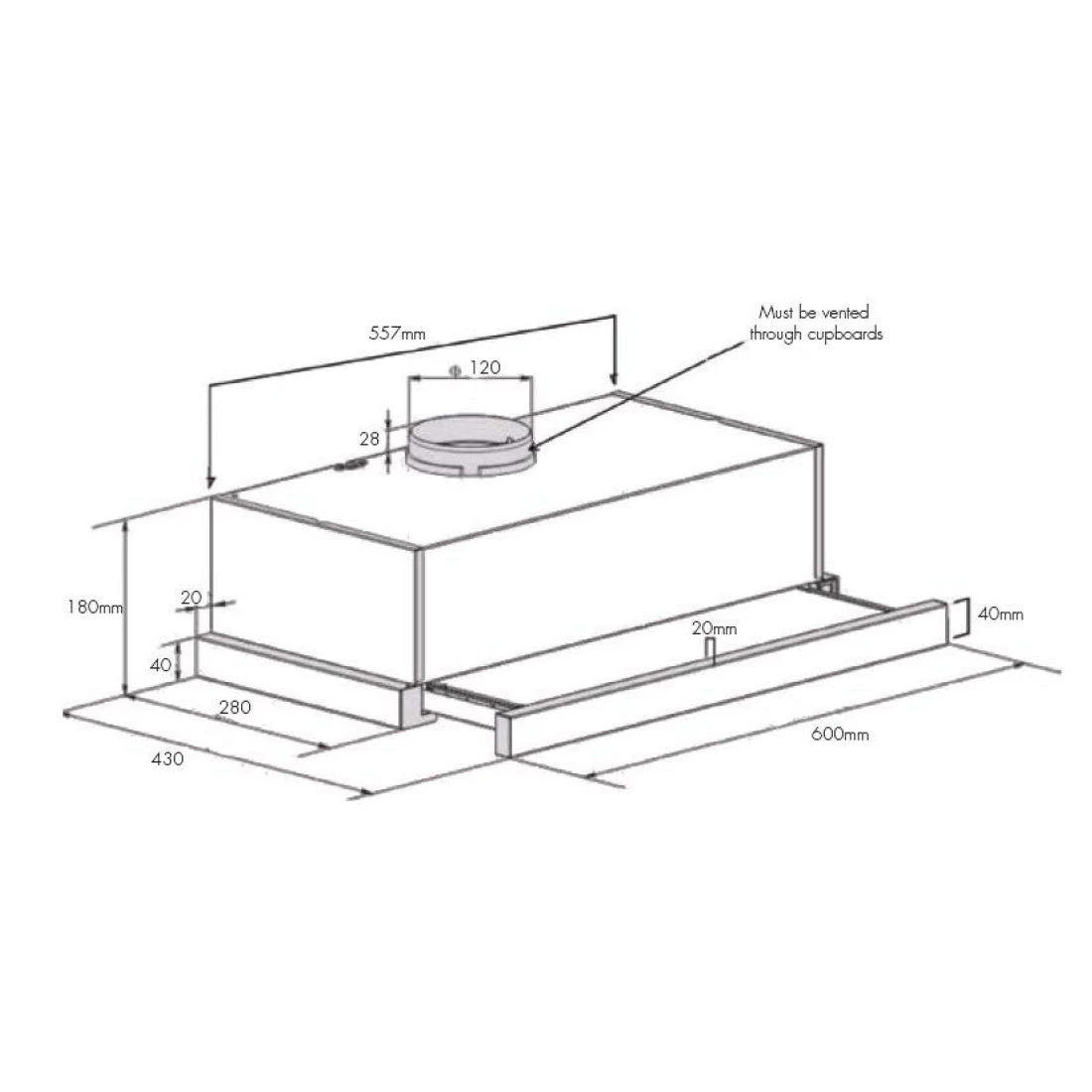 • 120mm Flue Diameter – Supports efficient venting for ducted or recirculating installation.