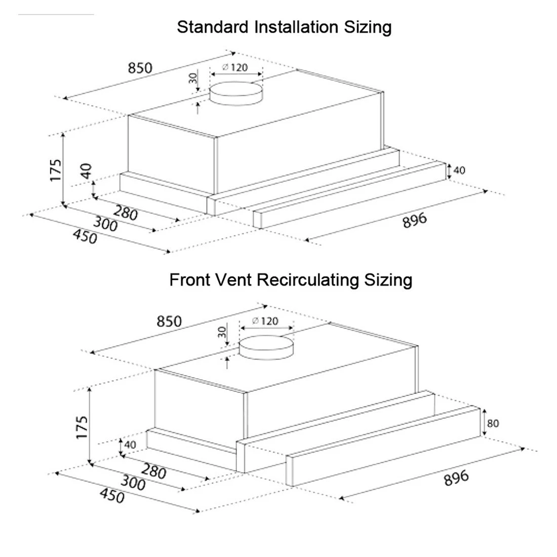 • Front Vent Recirculating Option – Offers ducted or recirculating operation to suit different kitchen setups.