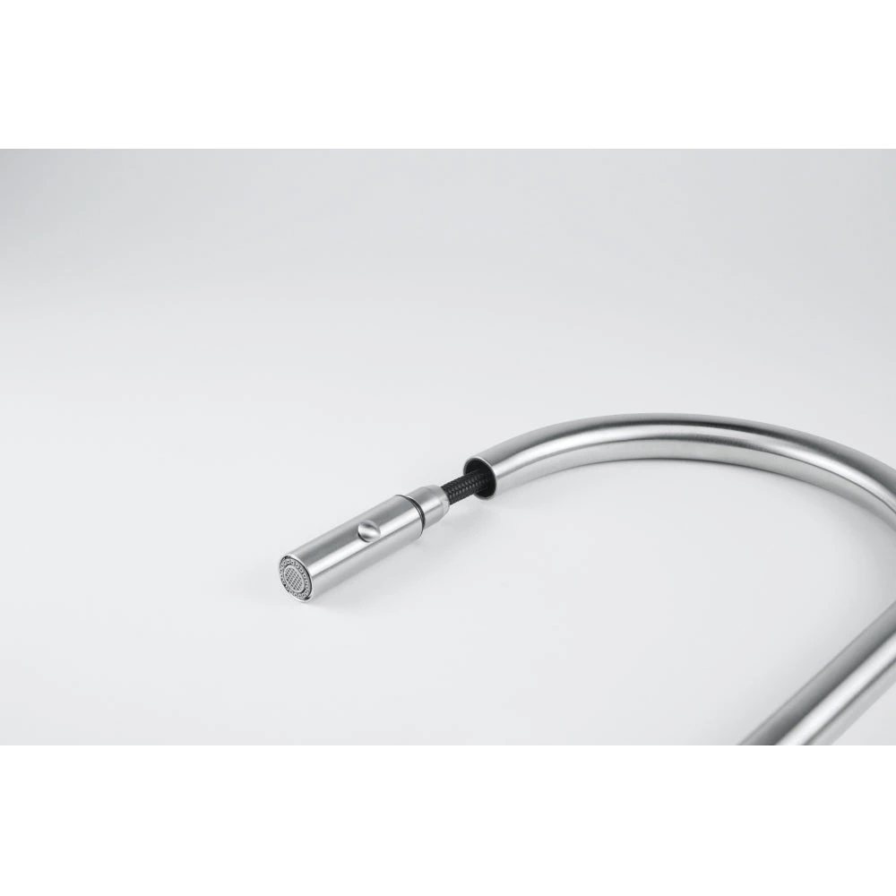 The true magic of the Eos Neo lies in its versatility. With a 180° rotation and a pull-out spray head, this tap brings water exactly where you need it. The textile pull-out hose ensures smooth operation, while the stainless steel spray head maintains the tap’s cohesive, high-end look.