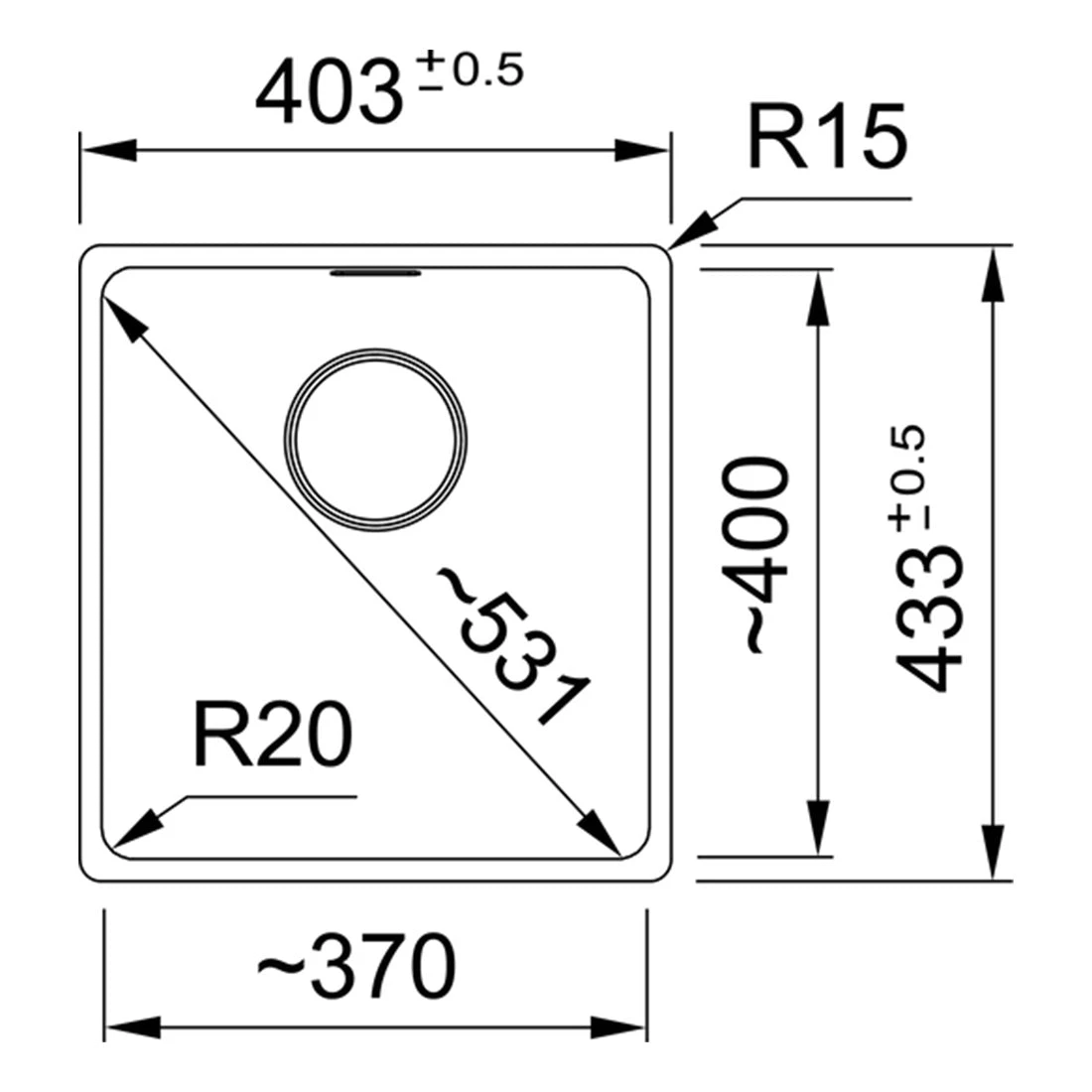 Single Bowl Design: Features a spacious 370mm single bowl, perfect for managing everyday kitchen tasks with ease.