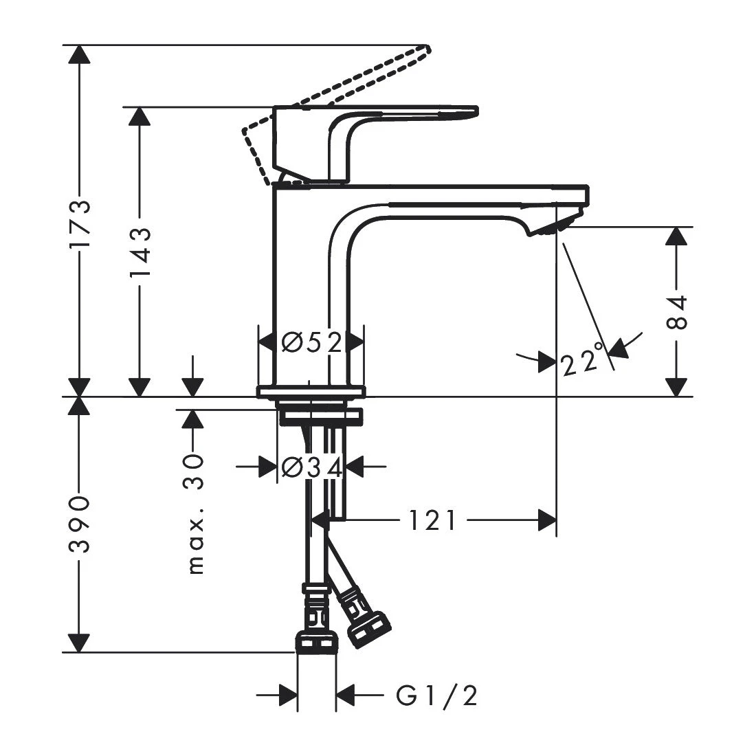 Compact and Stylish Design: The Rebris S Basin Mixer features a compact design with a spout height of 84mm and a projection of 121mm, making it perfect for smaller basins or minimalist bathroom layouts. The chrome finish adds a touch of sophistication, enhancing the overall aesthetic of your bathroom.