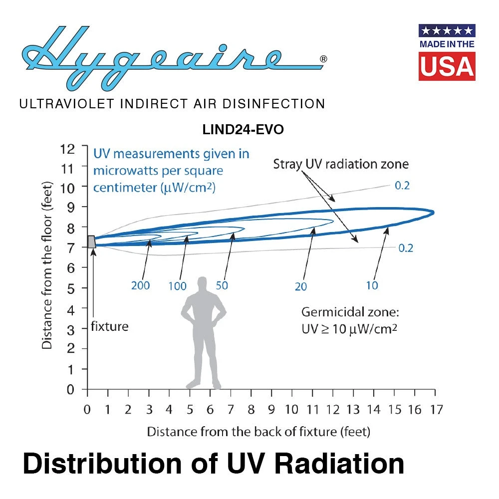 Hygeaire® Germicidal Ultraviolet Fixtures must be installed at a minimum of 7 feet above the floor. Occupants who will be at or above 7 feet must take appropriate protective measures.