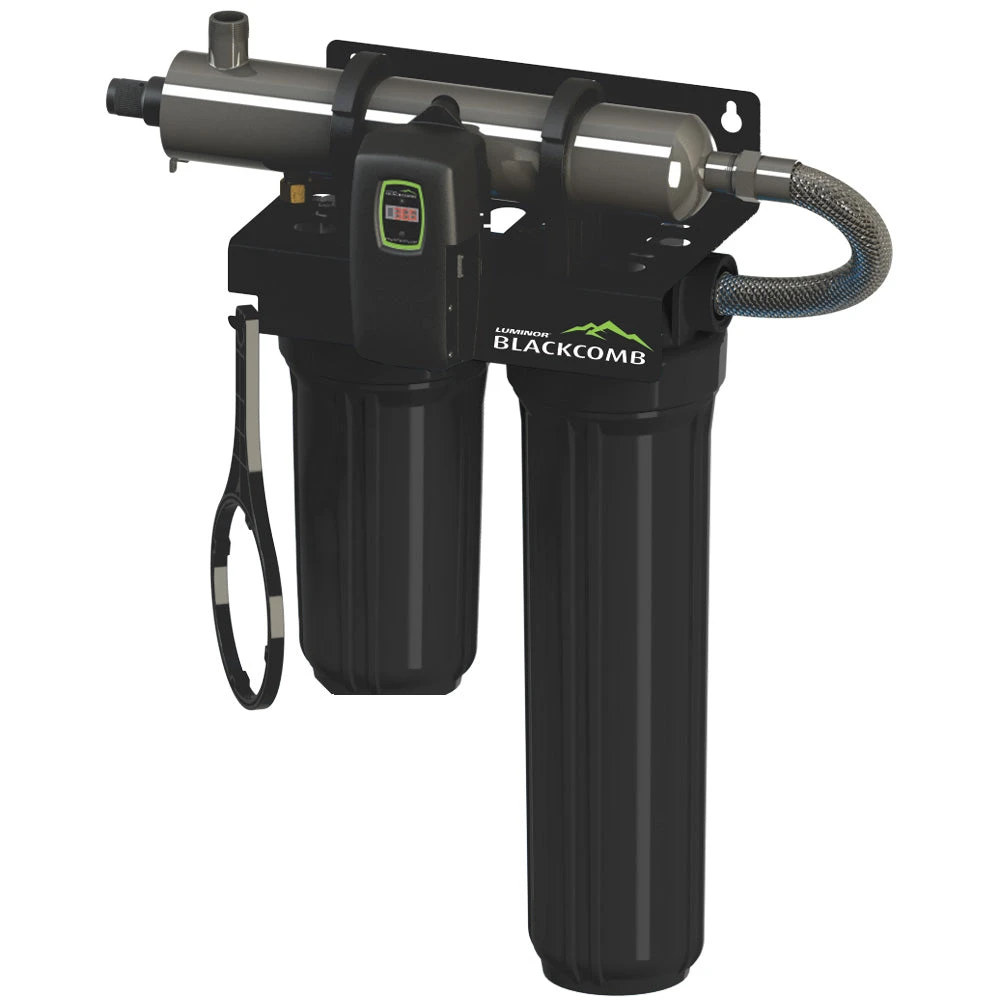 LUMINOR’s line of rack-mounted UV filtration systems offer the convenience of an all-in-one package, making installation a simple “in ‘n’ out” connection. Designed to treat flow rates of 8 and 15 gpm, LUMINOR’s rack-mounted UV filtration systems provide the required 5 micron pretreatment with the option of a full-flow carbon filter to treat taste and odor. Installation of a UV water filtration system has never been easier with a design that allows for feedwater to enter the filters from either the right or left side of the unit.