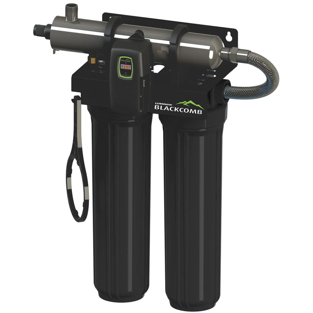 LUMINOR’s line of rack-mounted UV filtration systems offer the convenience of an all-in-one package, making installation a simple “in ‘n’ out” connection. Designed to treat flow rates of 8 and 15 gpm, LUMINOR’s rack-mounted UV filtration systems provide the required 5 micron pretreatment with the option of a full-flow carbon filter to treat taste and odor. Installation of a UV water filtration system has never been easier with a design that allows for feedwater to enter the filters from either the right or left side of the unit.