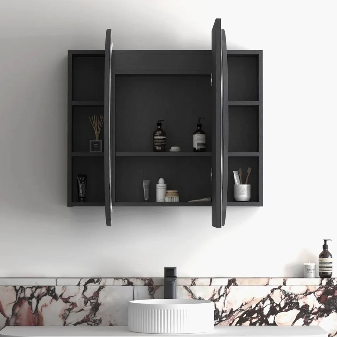 • Fixed Shelf Storage – Provides sturdy and spacious storage for bathroom accessories and toiletries.