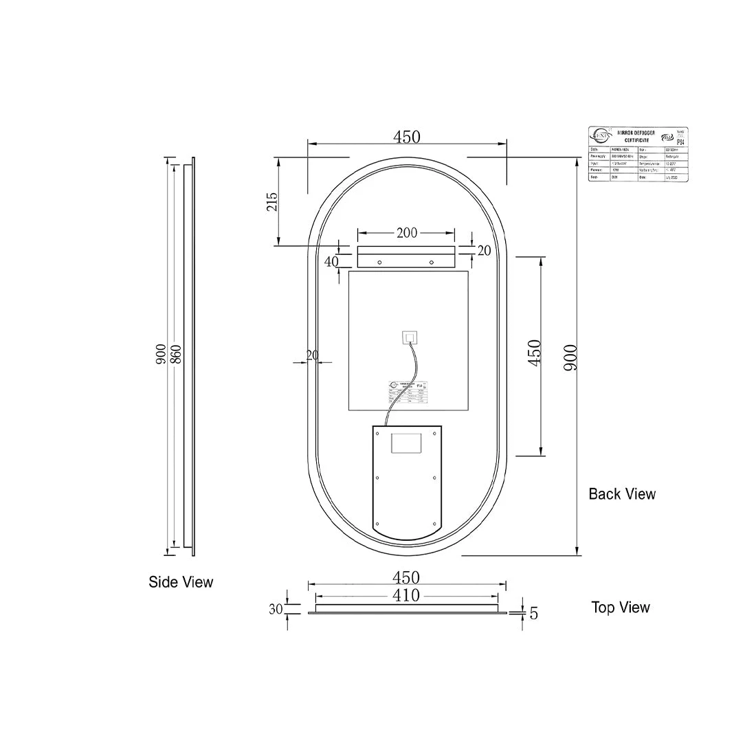 Dimensions: 900mm (H) x 450mm (W) x 30mm (D)