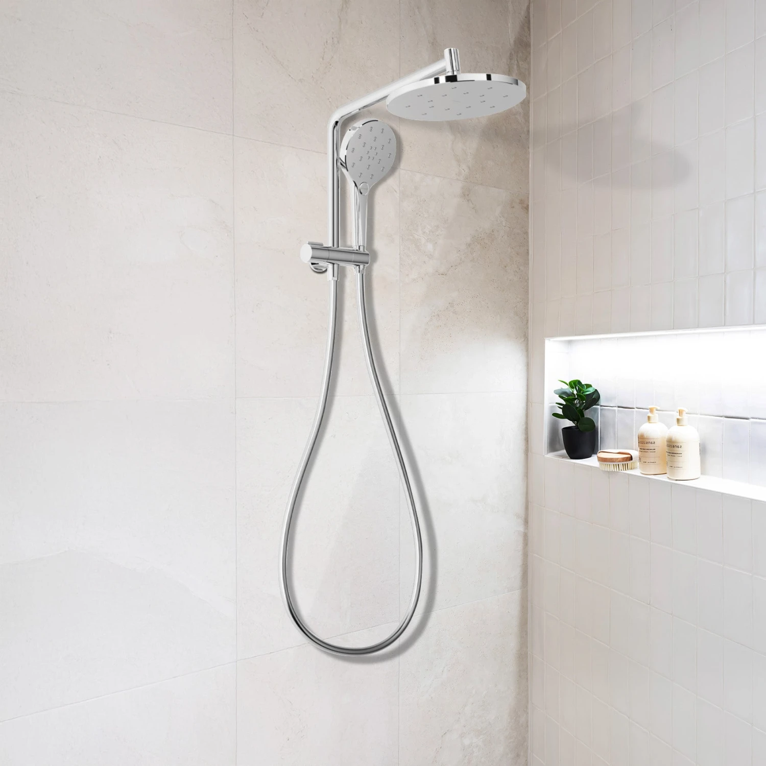 • Dual Shower System: Enjoy the flexibility of an overhead shower and a handpiece