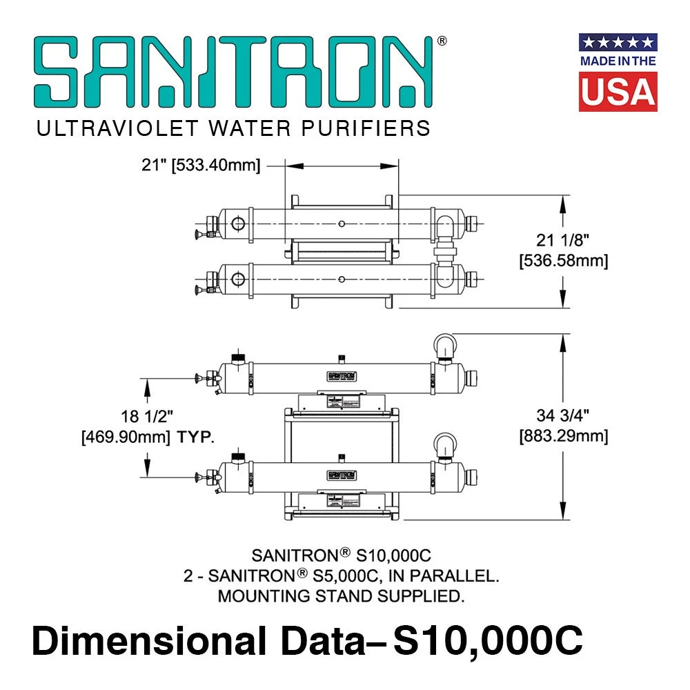 Sanitron S10,000C UVC Water Purifier – 166 GPM – 2″ NPT Inlet/Outlet – Multi-Chamber(Sanitron Uv Water Purifiers 166 Gpm Multi Chamber Models Lamps Quartz Sleeves Included)