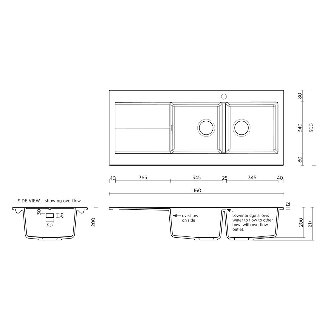 Seima Oros 1162 Sink Left Drainer 1 Taphole Black