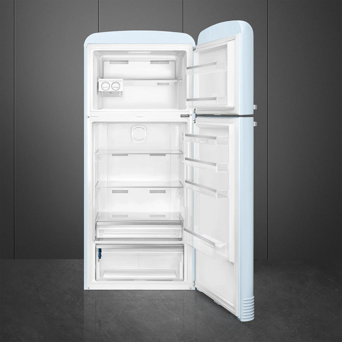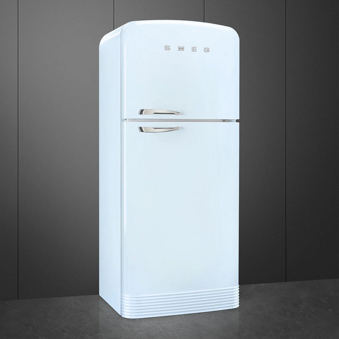Curved lines, chrome finishes, and distinctive styling make this fridge a centrepiece in any contemporary or vintage-themed kitchen.