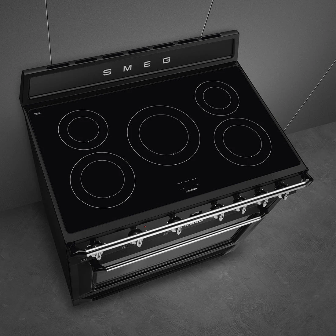 Finished in matte black with chrome control knobs and handles, this cooker captures the charm of traditional design with a bold, contemporary twist.