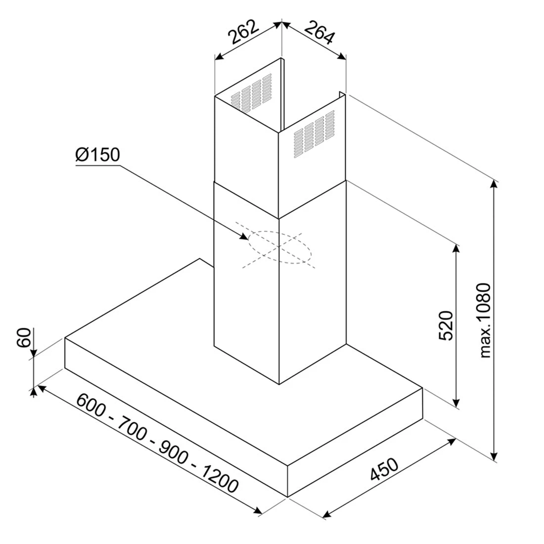 Smeg Wall Mount T-Shape Canopy Rangehood Matte Black 90cm